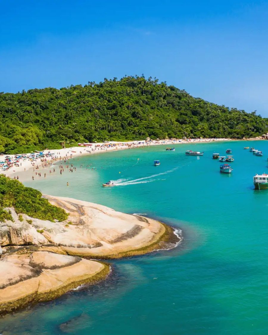 Desfrute do mar cristalino em um passeio inesquecível em Florianópolis: embarque de catamarã rumo à Ilha do Campeche e admire paisagens paradisíacas